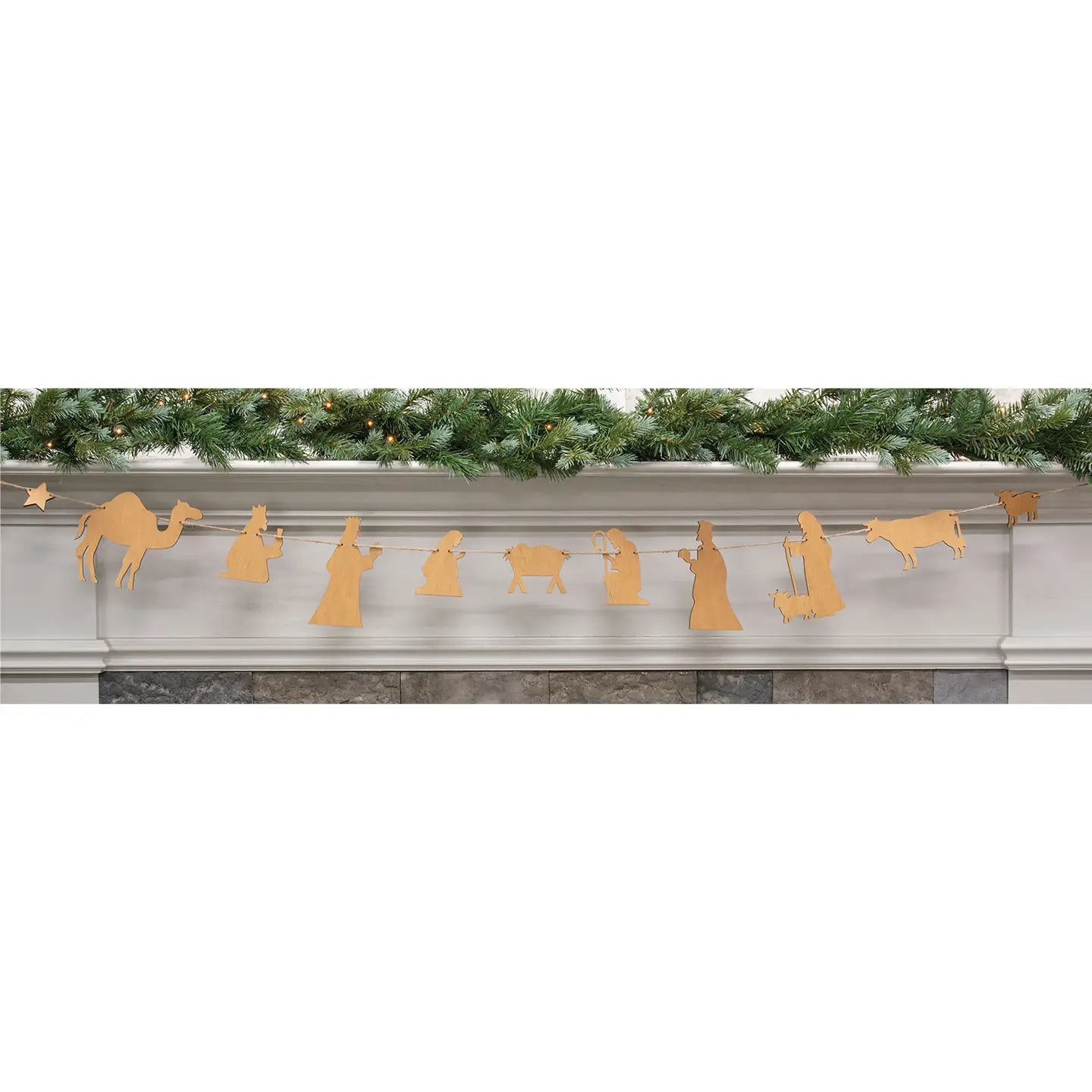 Our Natural Wood Nativity Garland includes 11 silhouetted figures on a jute twine string. It's perfect for decorating a mantlepiece, over a kitchen range, or nestling throughout a Christmas wreath. Measures 63" long and each end has a loop for hanging.