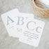 Cards are 5x7 inches with rounded edges. Printed on 120 lb card stock. 27 cards in a set: letters A-Z and an introductory card.