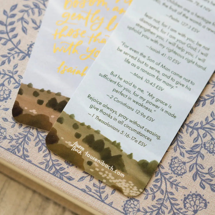 • Front side: Gold foil Bible verse (Isaiah 40:11)