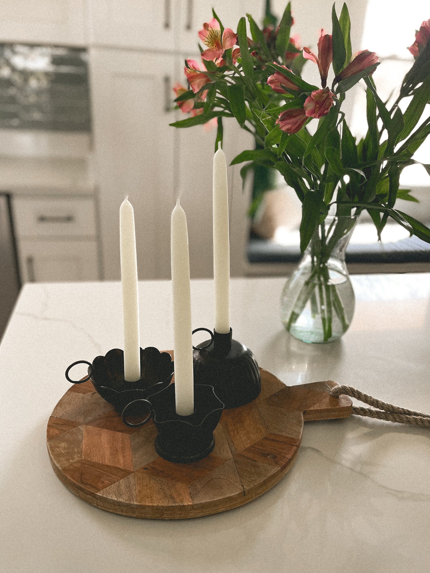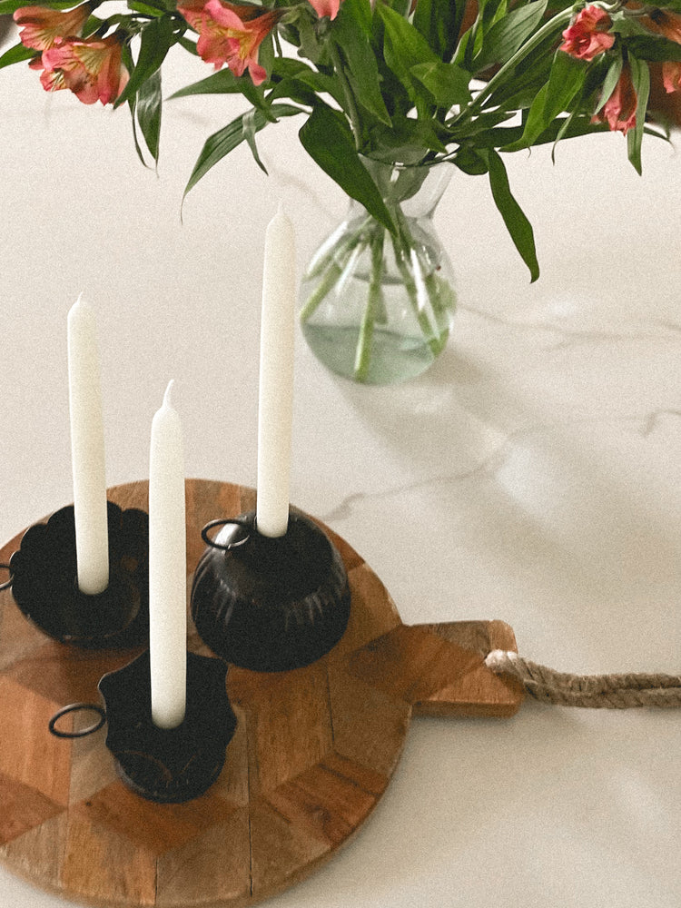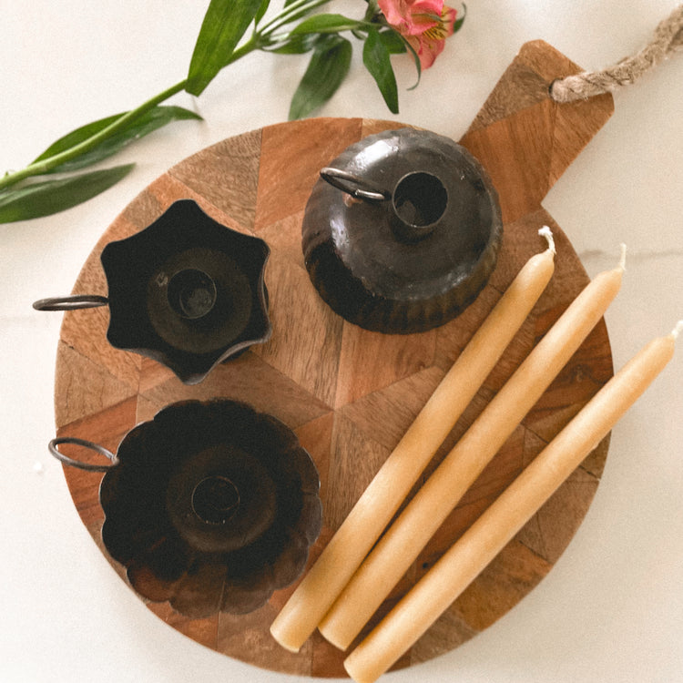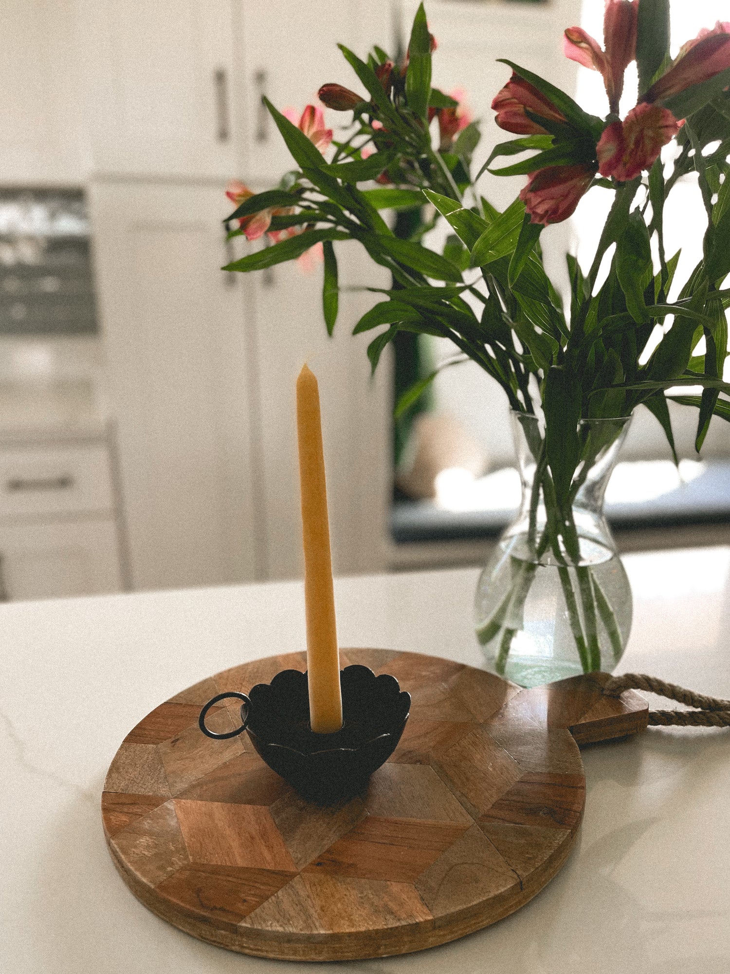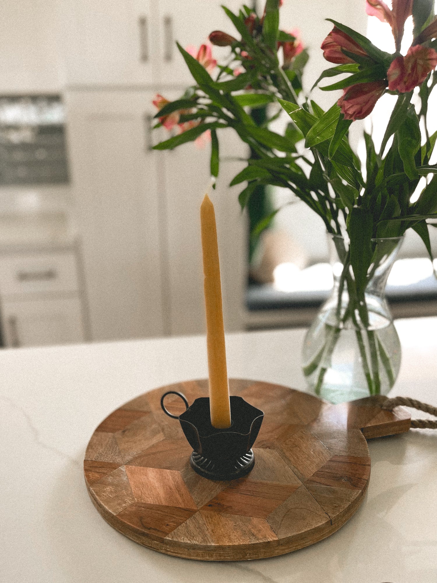PERFECT PAIRING: Our 100% beeswax taper candles are a perfect match with these stunning holders.