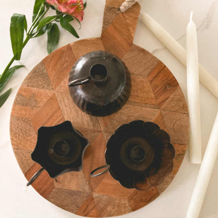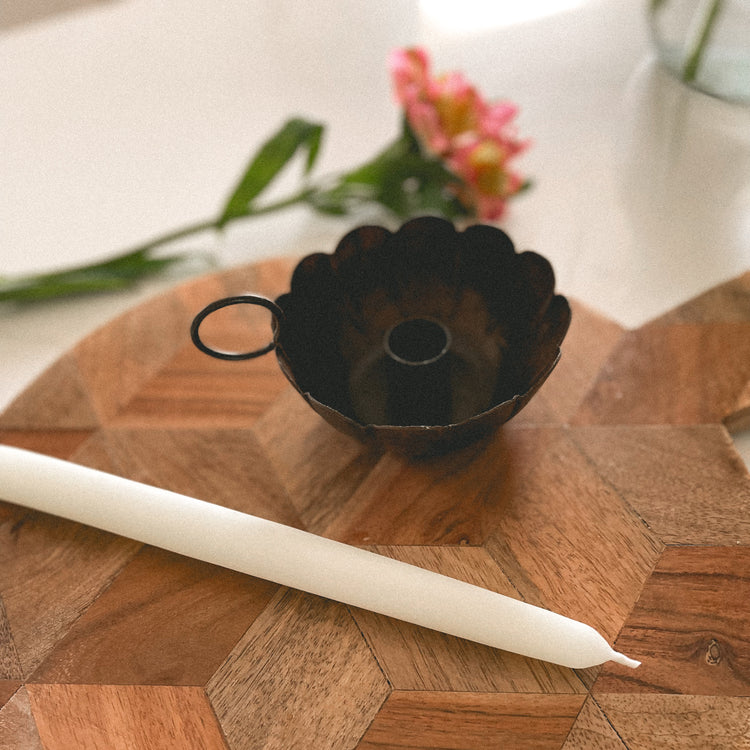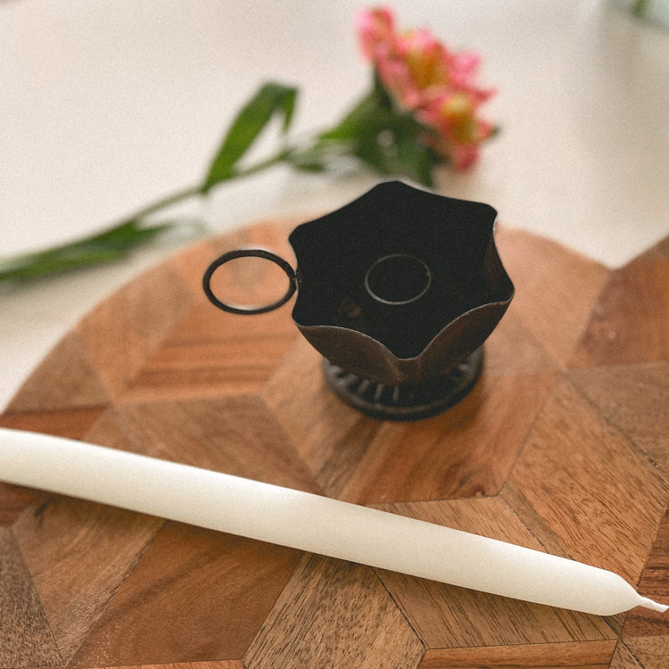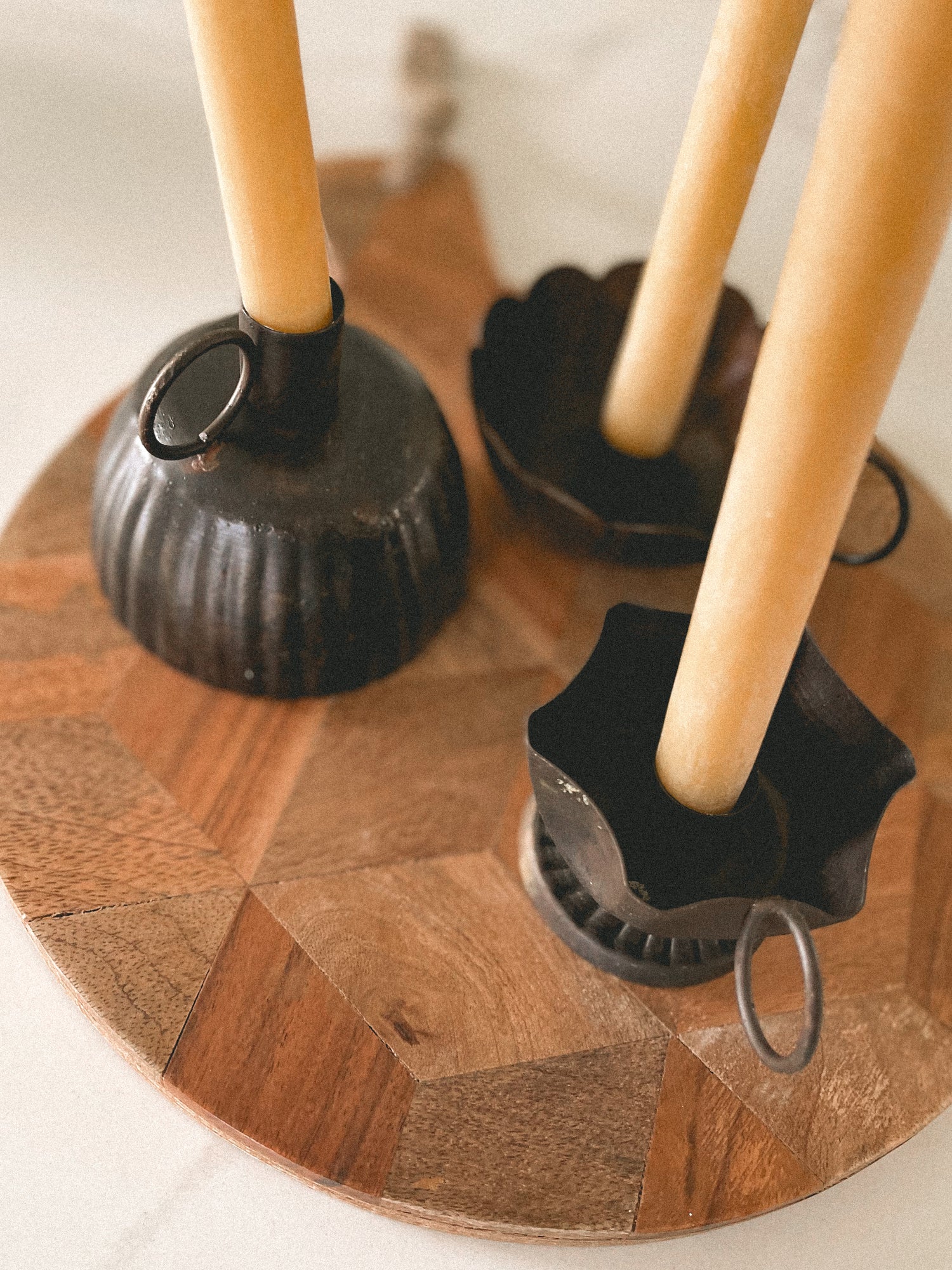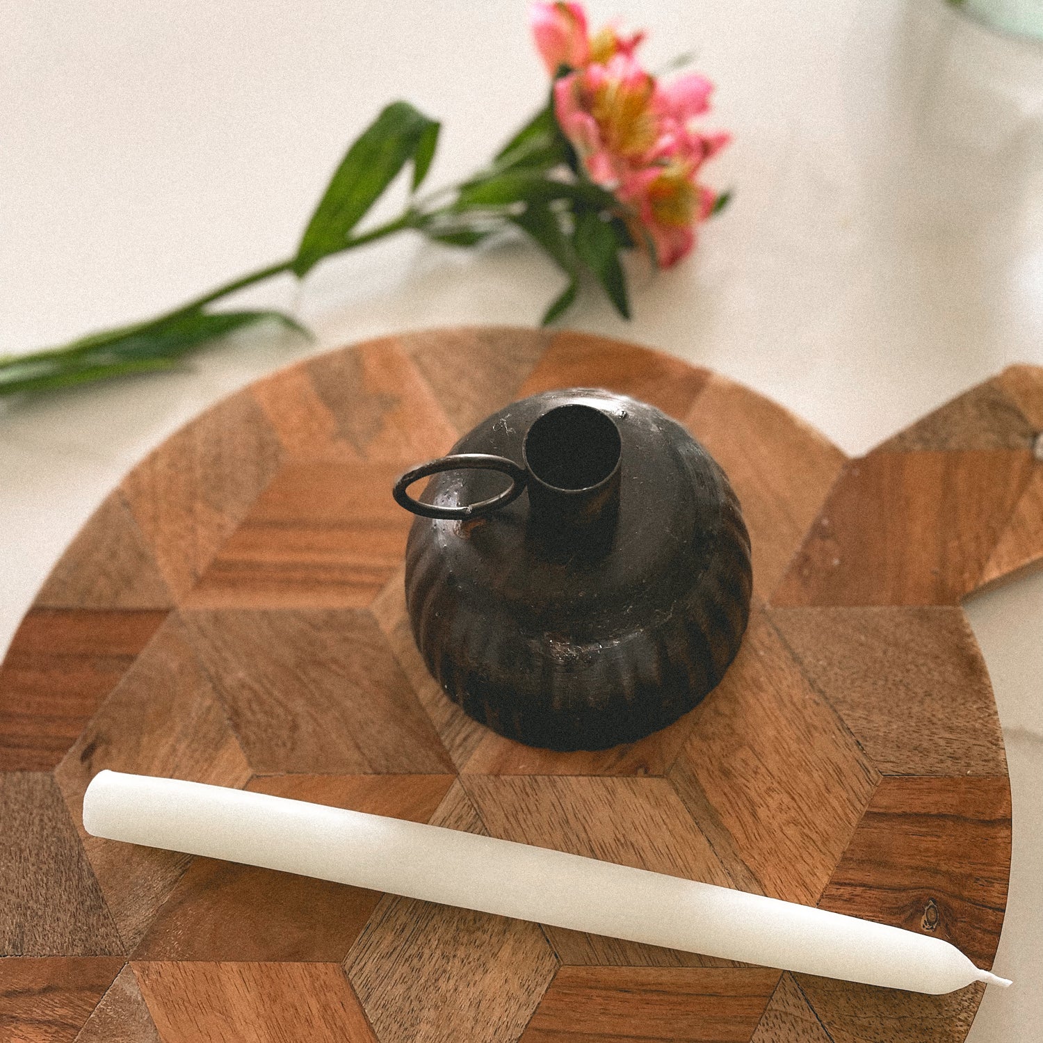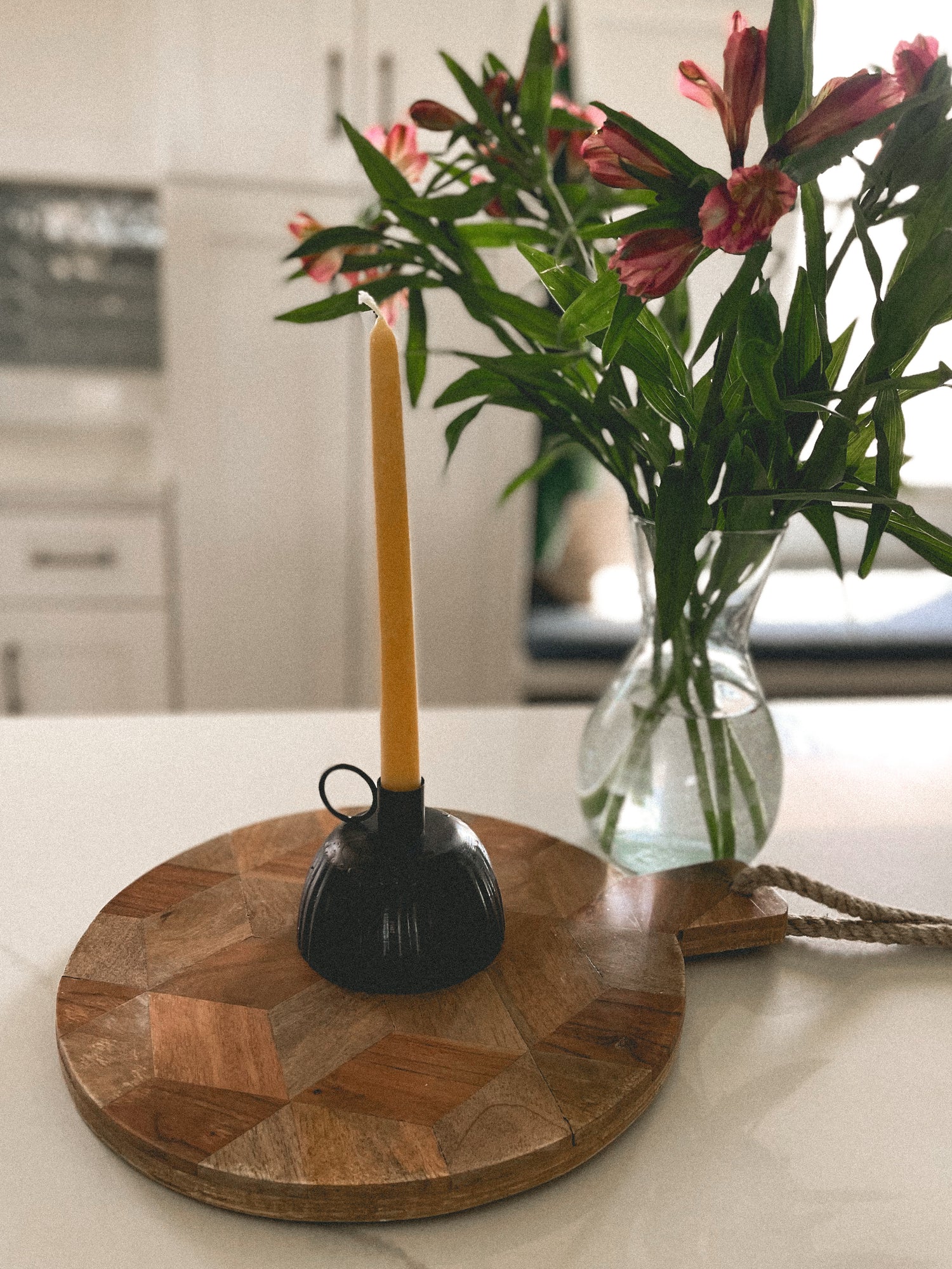 PERFECT PAIRING: Our 100% beeswax taper candles are a perfect match with these stunning holders.