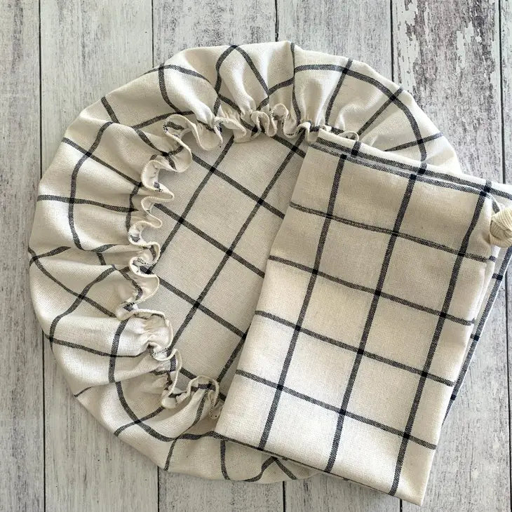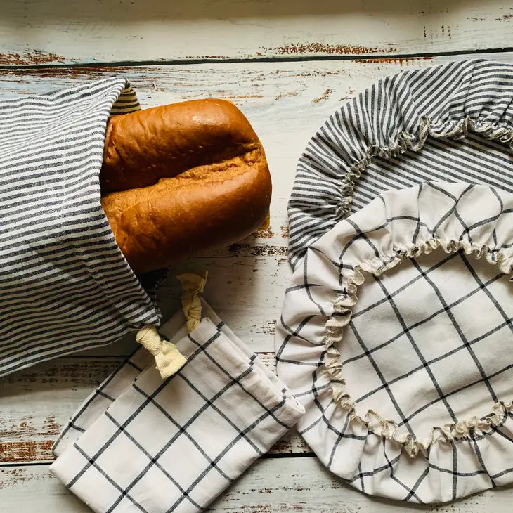 Perfect for the bread maker in your life (this may be you!). A linen blend XL bowl cover (skip the plastic) for your rising dough and a bread bag for after you bake your bread. The bowl cover fits a bowl up to 16inches. Bread bag is 12 x 16" and closes with a drawstring.