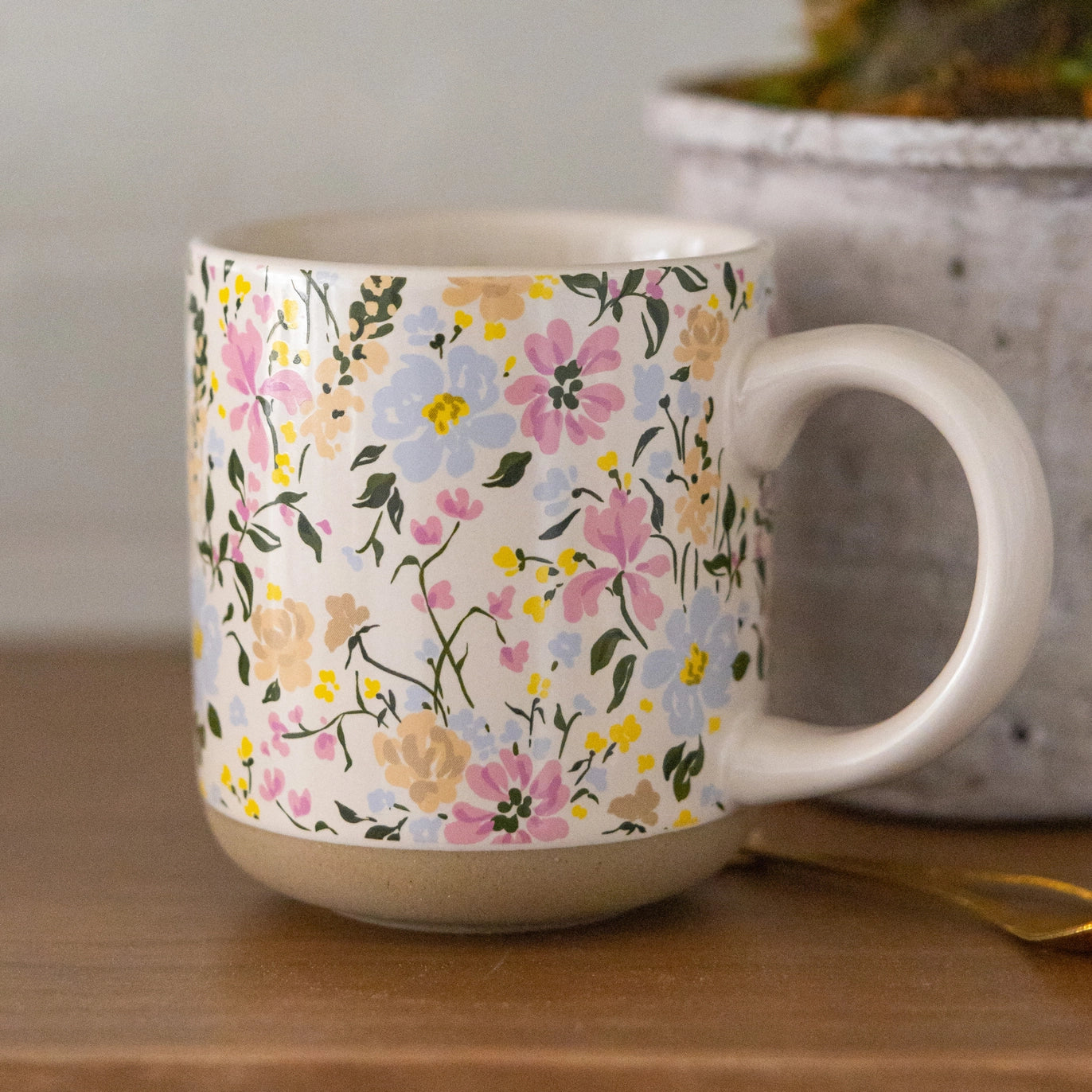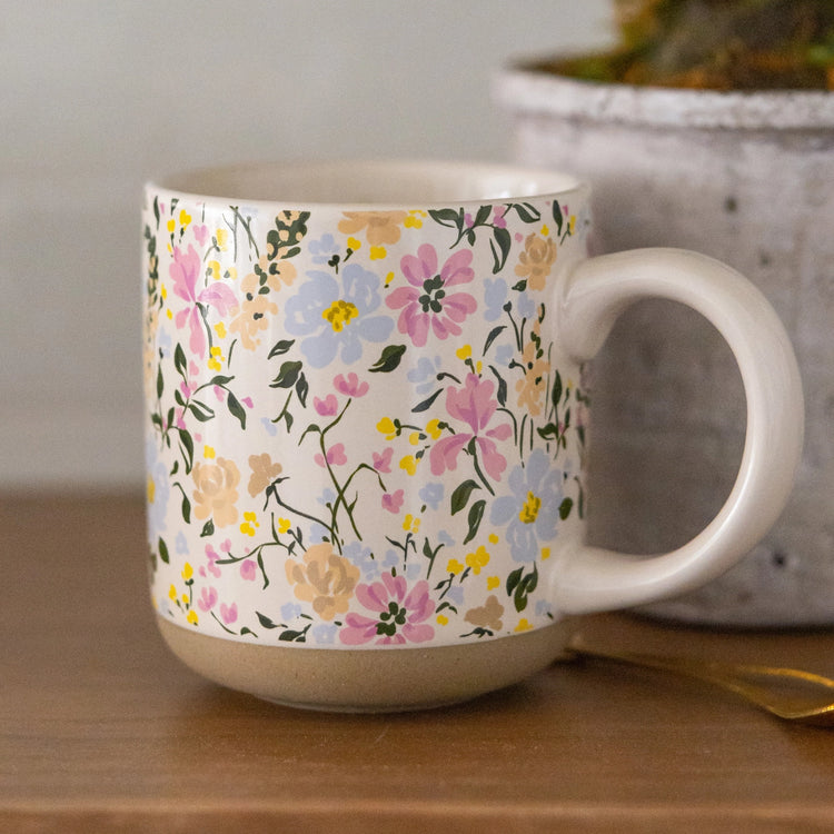 DETAILS: • 14oz Stoneware Style Mug • Size: 3.31 x 3.93" (5.19" w/handle) • Design on Both Sides of Mug • Floral Design • Speckled Design with Natural Bottom Details • Each piece is hand-crafted. Microwave and Dishwasher Safe • Wash Before Use and Avoid Abrasive Cloths When Cleaning •