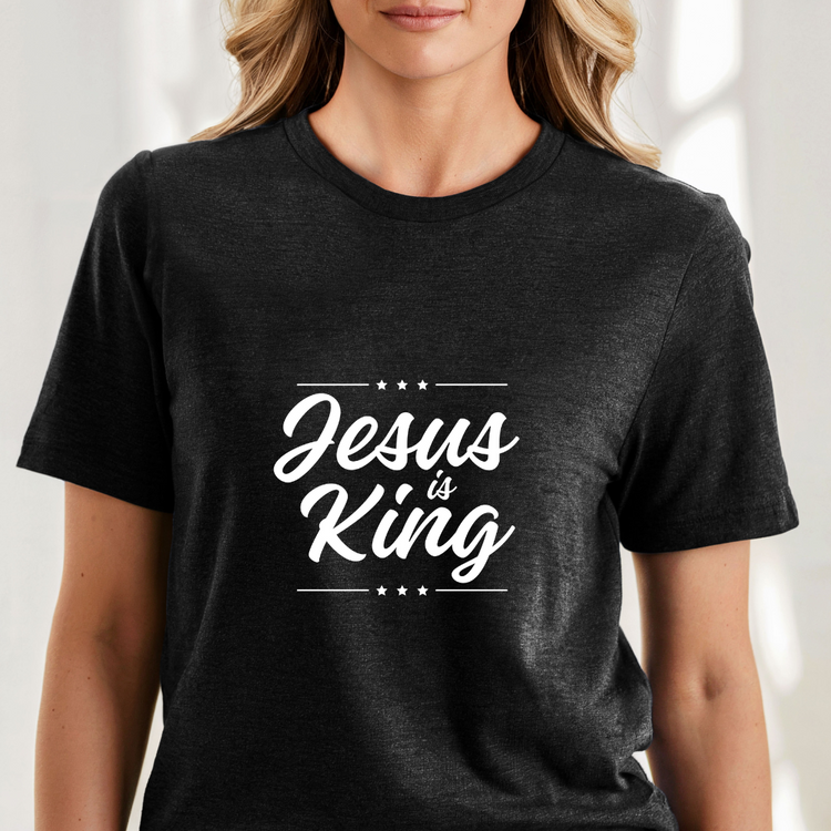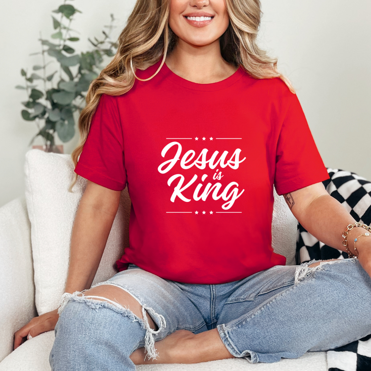 Our Christmas Apparel is a fun, festive reminder that Jesus is King, not only reigning on His throne in Heaven, but also over all creatures, all nations and the whole world. Our Jesus is King Tee features "Jesus is King" on the front, and Revelation 11:5 on the back. Comes in Christmas red, black, hunter green and cardinal (deep maroon) red.
