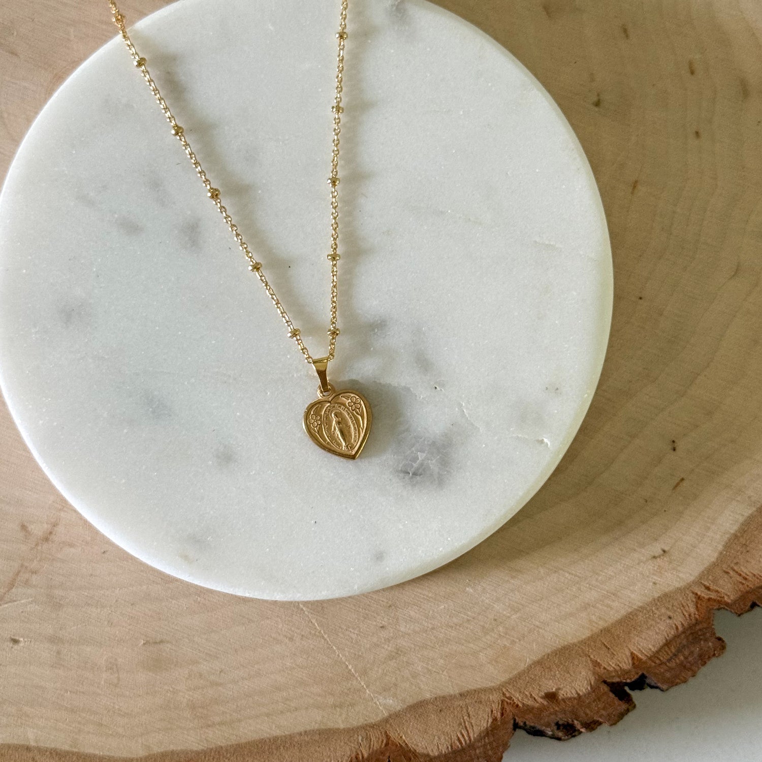 If you are in need of an infusion of grace, look no further. The "Miraculous" Mary has the power to bring grace and peace into the hearts of those who seek her. 14k gold over brass on an 18" Beaded chain. Designed and assembled in Sonoma, California.
