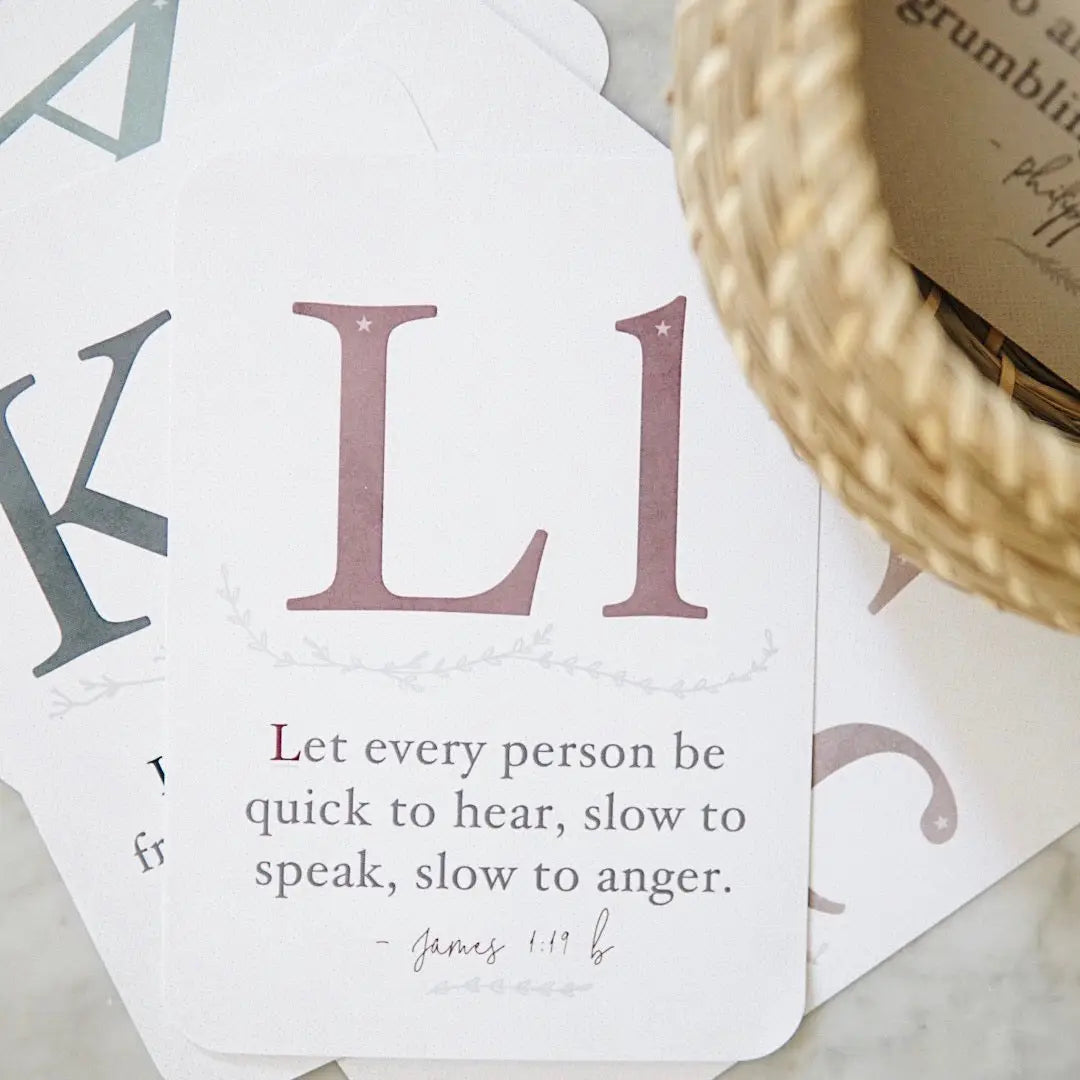 Our ABC Scripture Memorization Cards are a great tool for teaching and training our children.