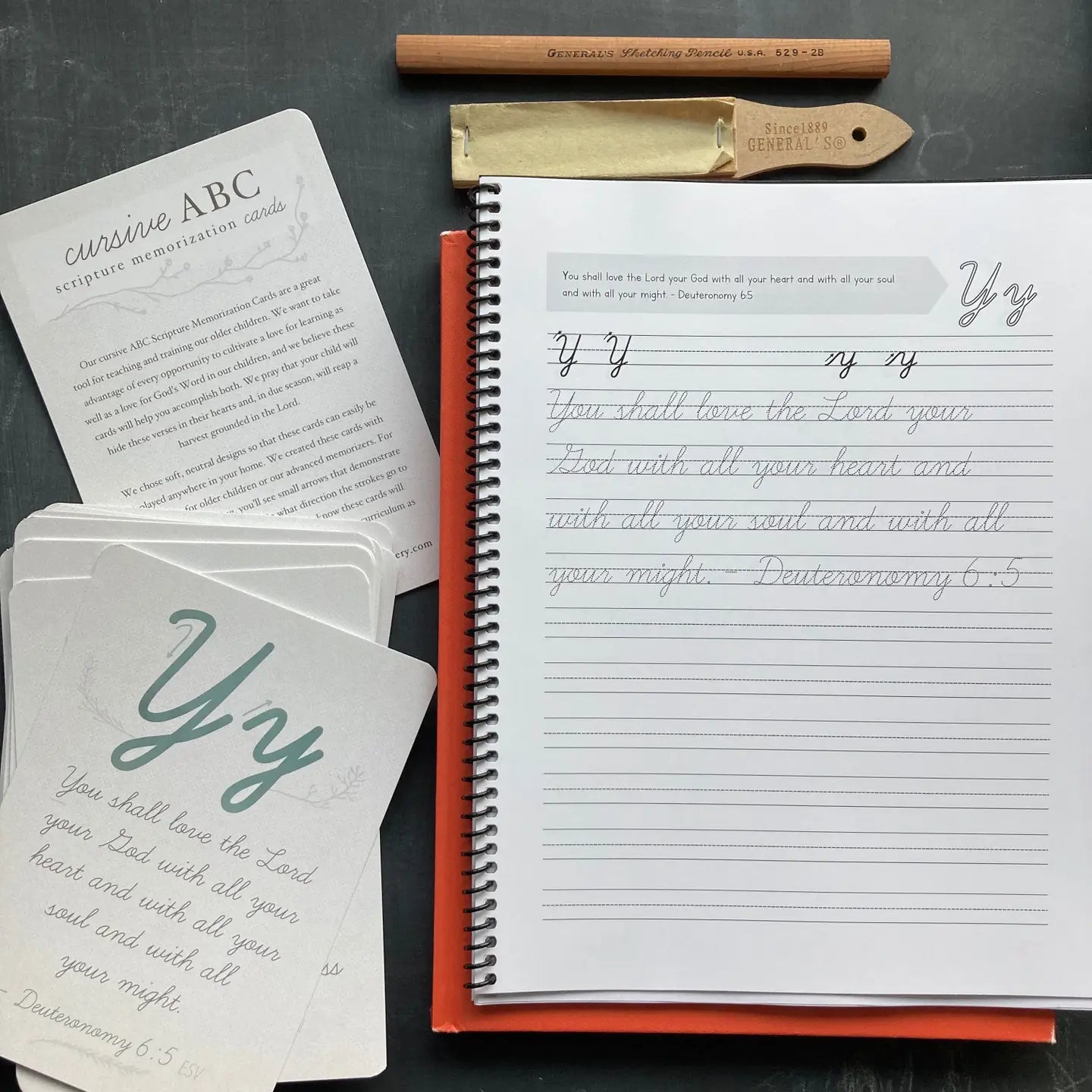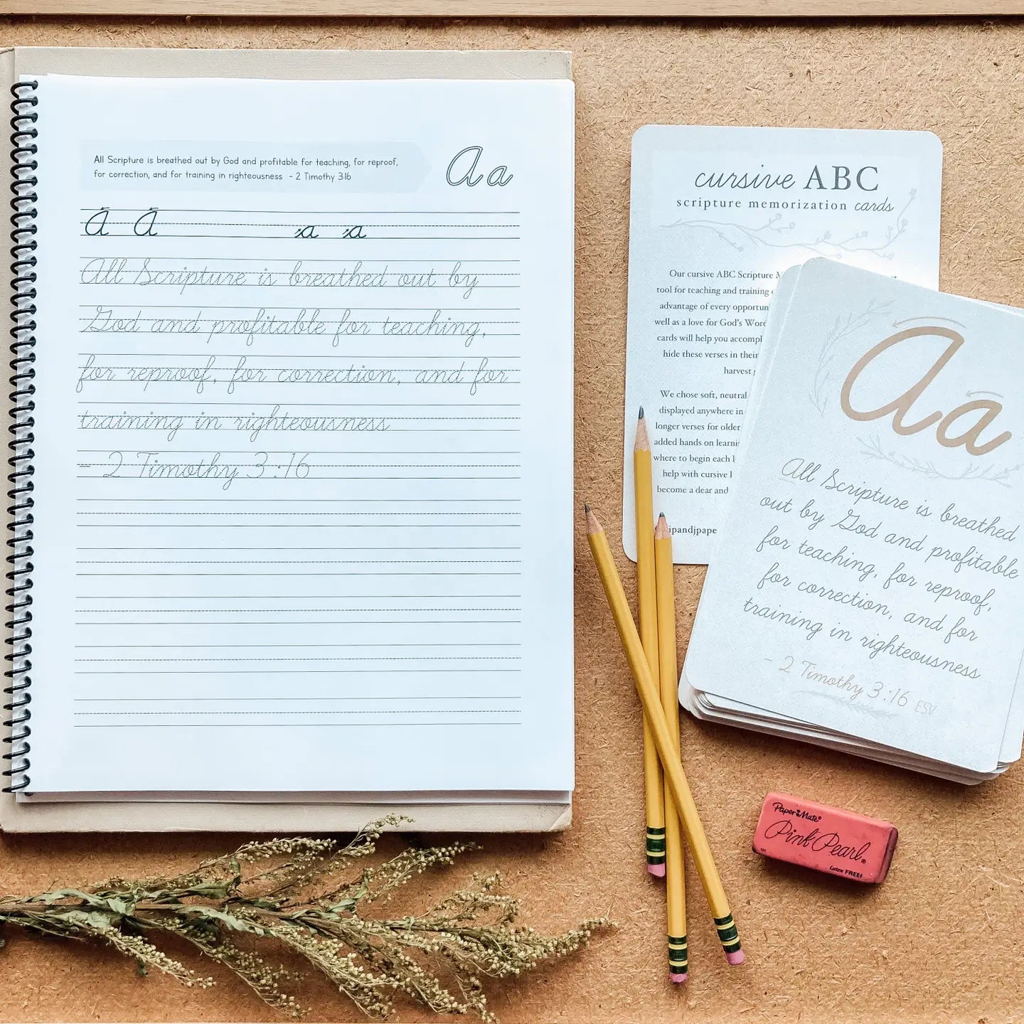 Cursive ABC Scripture Memorization Cards + Workbook Bundle
