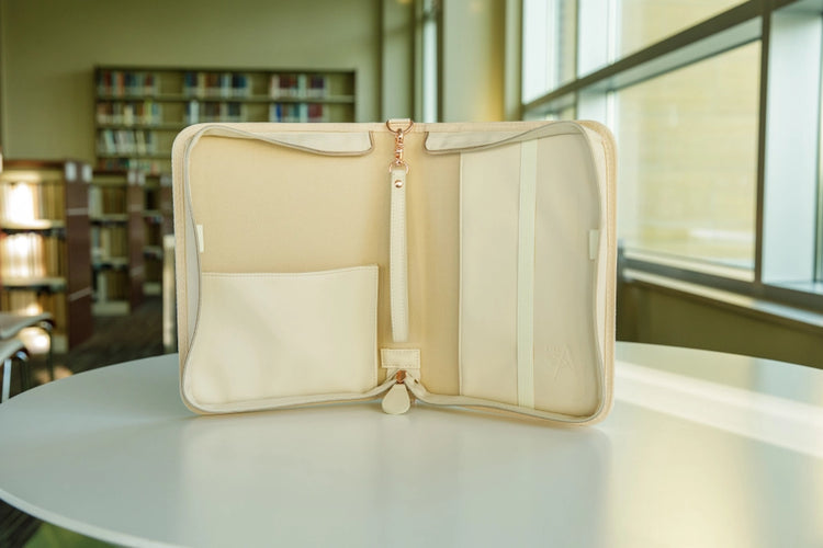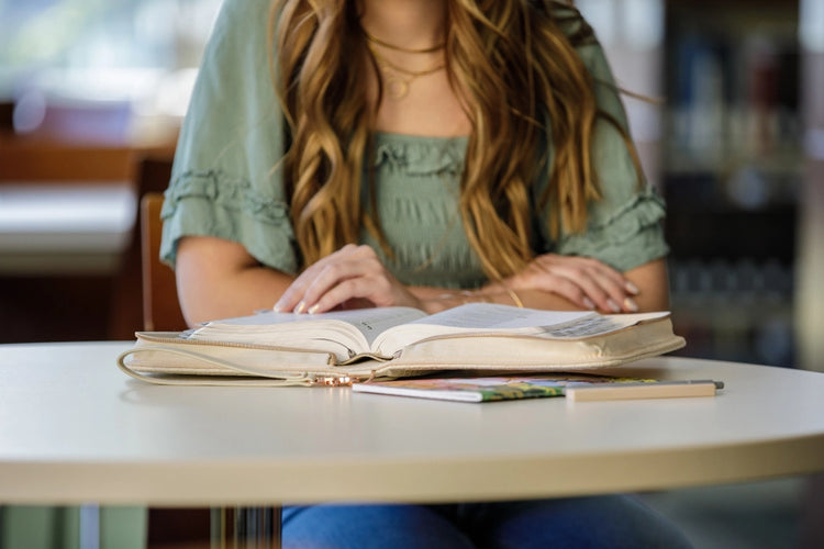 Our pearly cream Crossbody Bible Cover is designed to blend minimalist desirability with smart functionality. This premium vegan leather Bible Case is for the women who like to carry only the essentials. The Bible Cover is equipped with a detachable wristlet, a convenient spine handle, and a detachable crossbody strap for an effortless carry.