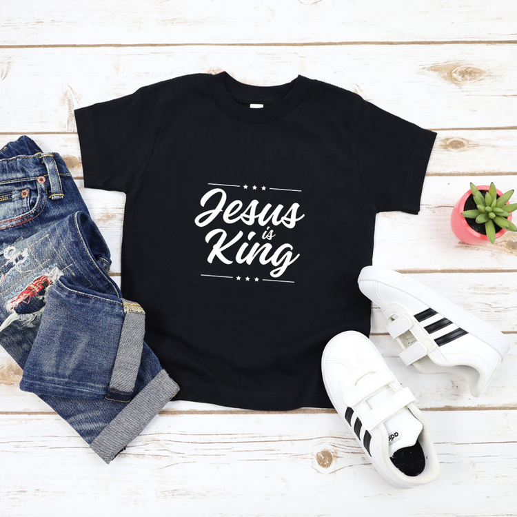 HOW ADORABLE is our youth-size Jesus is King Christmas tee?!? Perfect pairing with jeans for Christmas outing fun, or with Christmas jammies around the fire. Cozy, comfortable, and can be worn all year long.
