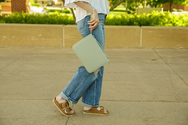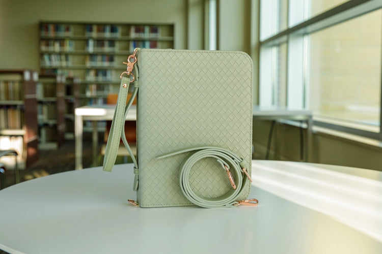 Our sage green Crossbody Bible Cover is designed to blend minimalist desirability with smart functionality. This premium vegan leather Bible Case is for the women who like to carry only the essentials. The Bible Cover is equipped with a detachable wristlet, a convenient spine handle, and a detachable crossbody strap for an effortless carry.