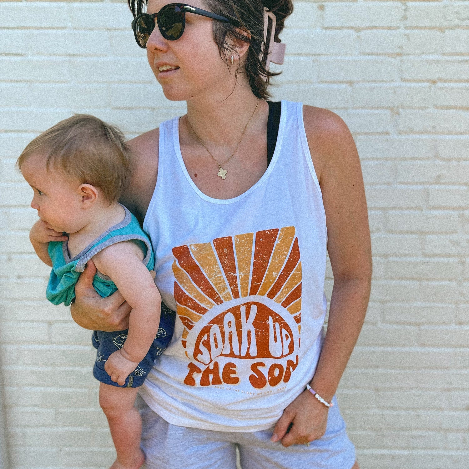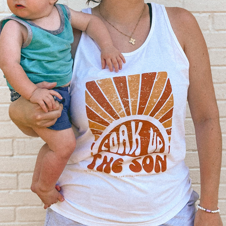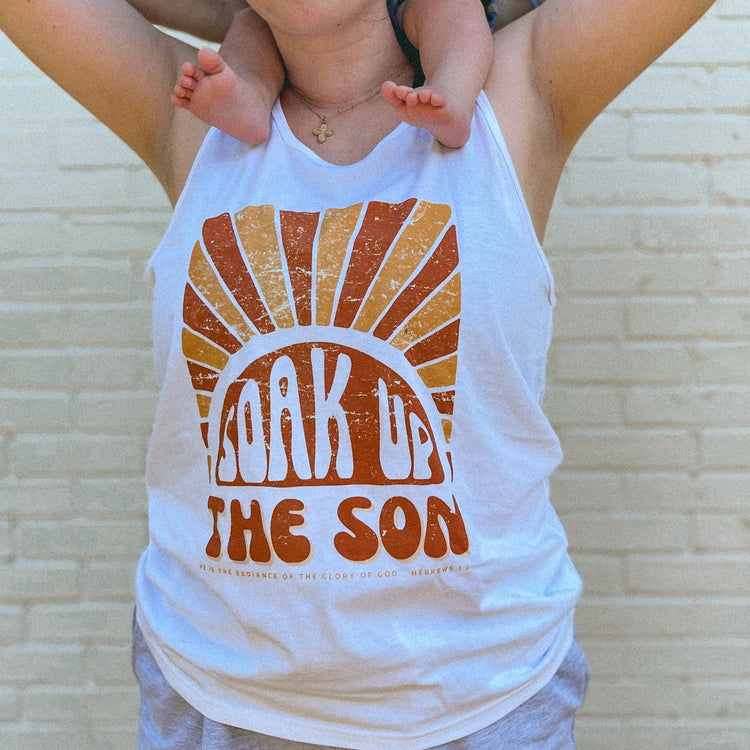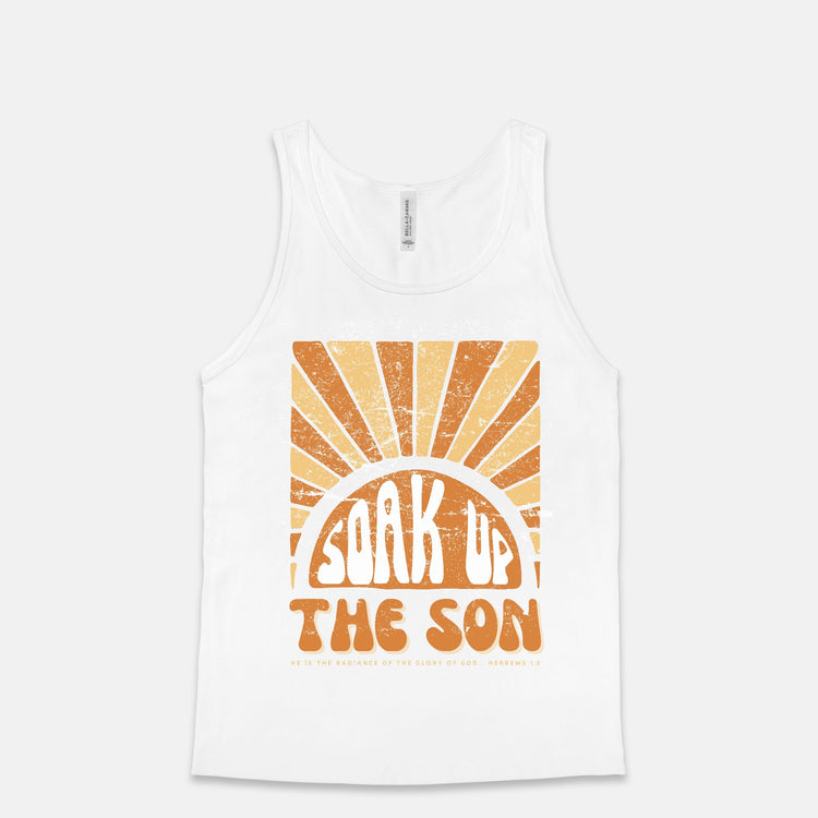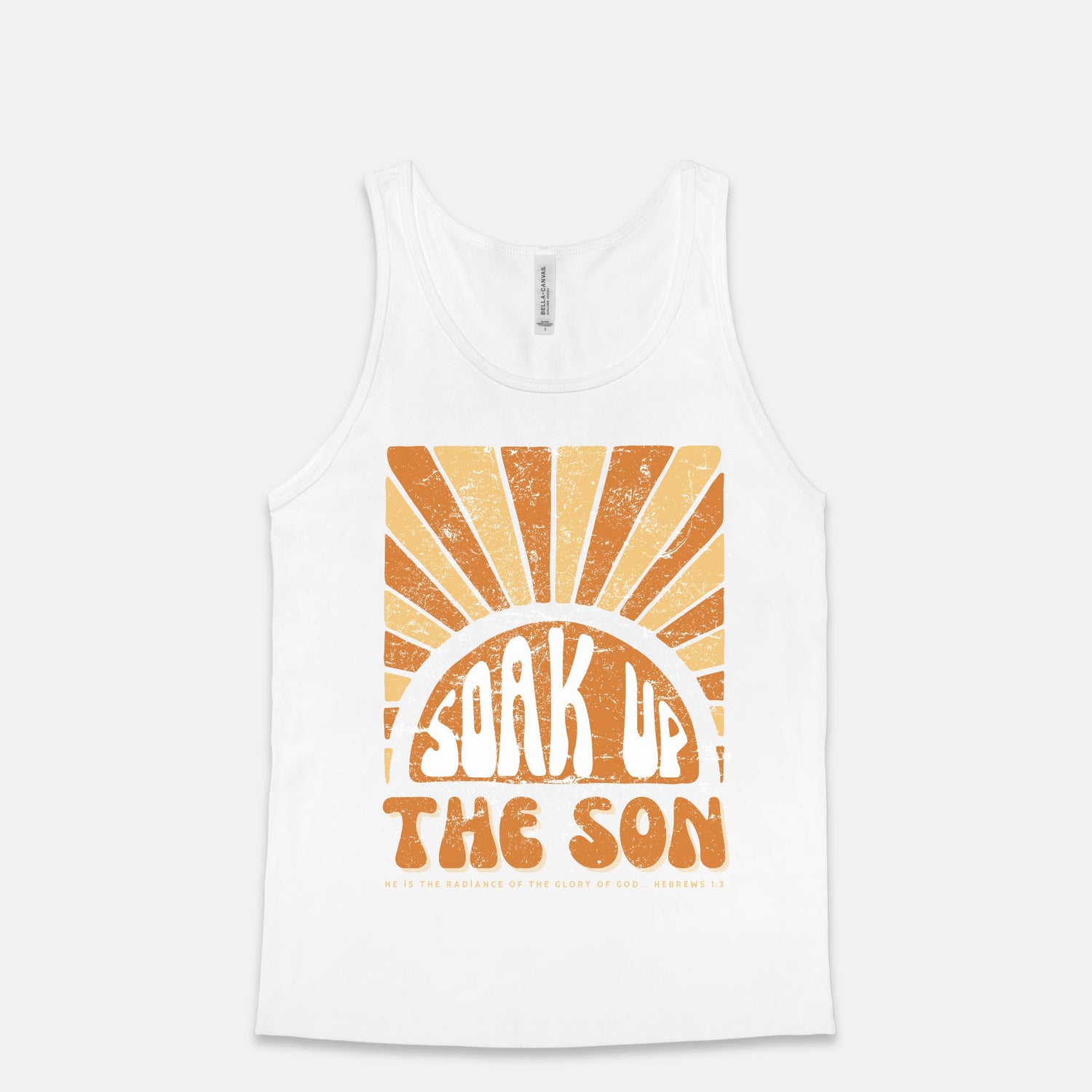 Inspired by Hebrews 1:3, our "soak up the SON" tank top is perfect for all your summertime activities! Runs true to size.
